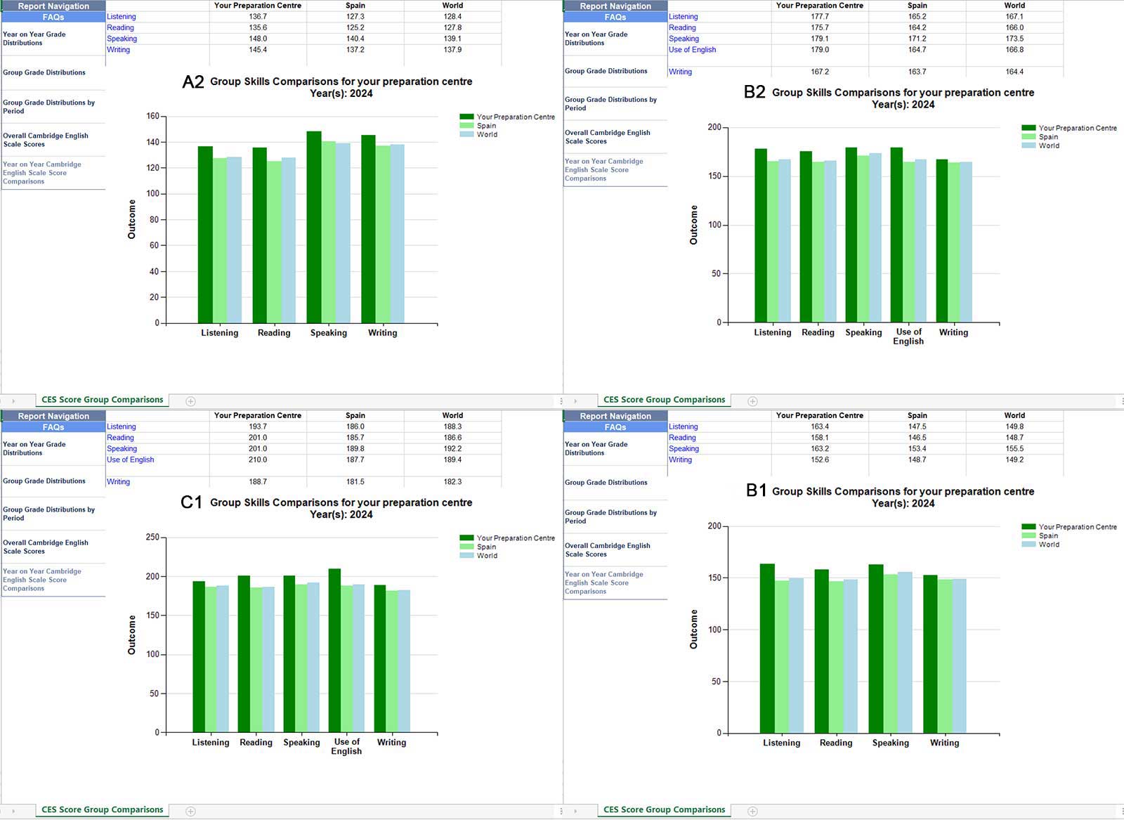 Al sumar todos los niveles, queda claro que nuestros alumnos superan las medias de España y del mundo en todas las destrezas: listening, reading, speaking y writing. Estos resultados excepcionales ponen de manifiesto la eficacia de nuestros métodos de enseñanza personalizados y nuestro compromiso con el progreso de cada estudiante en su camino con el idioma.